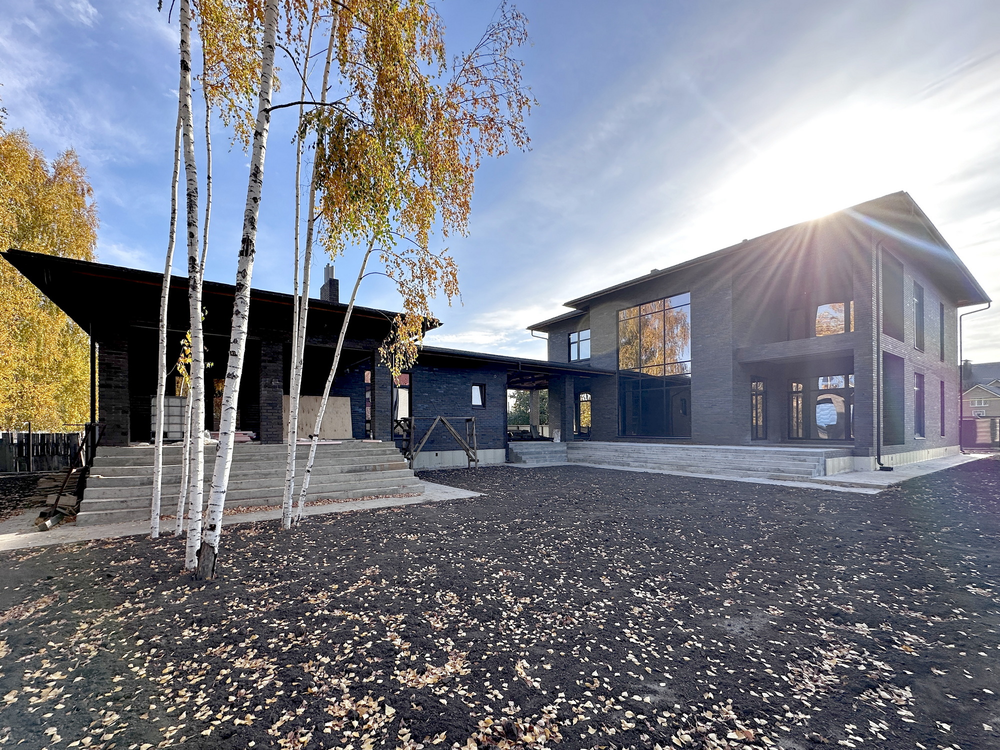 Все эти постройки расположены на участке 16,87 сот, огороженном забором из клинкерного кирпича в цвет фасадов.