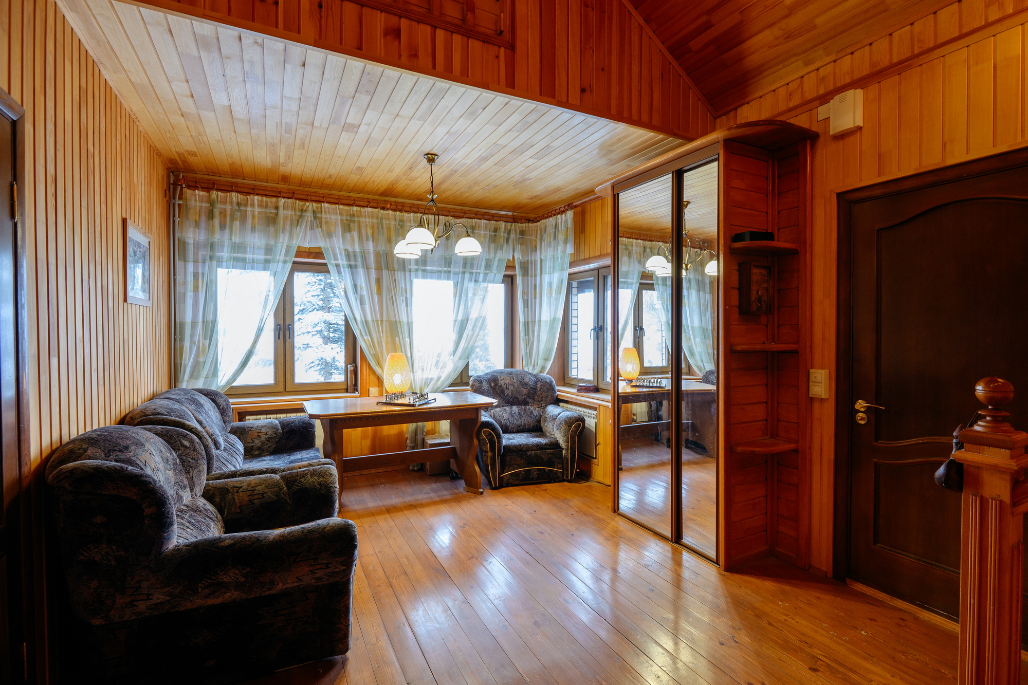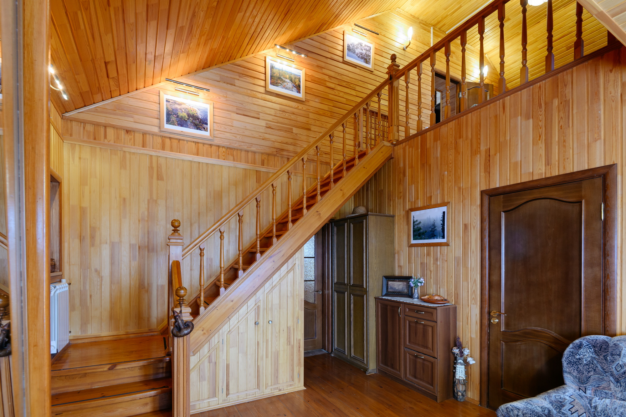 Внутренняя отделка: различные сорта древесины - лиственница, сосна, дуб и тд.