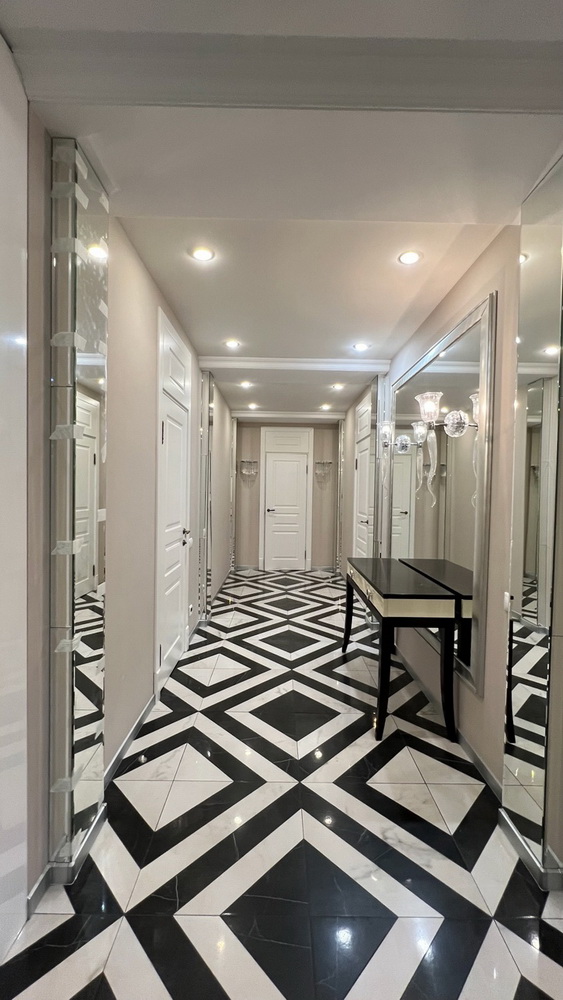 Квартира с качественным ремонтом с продуманной системой освещения, создающей теплую и уютную атмосферу.