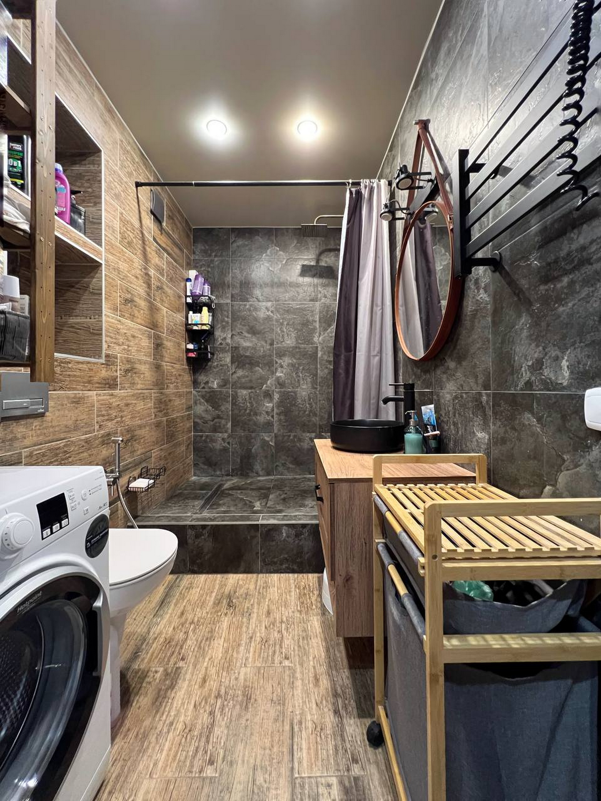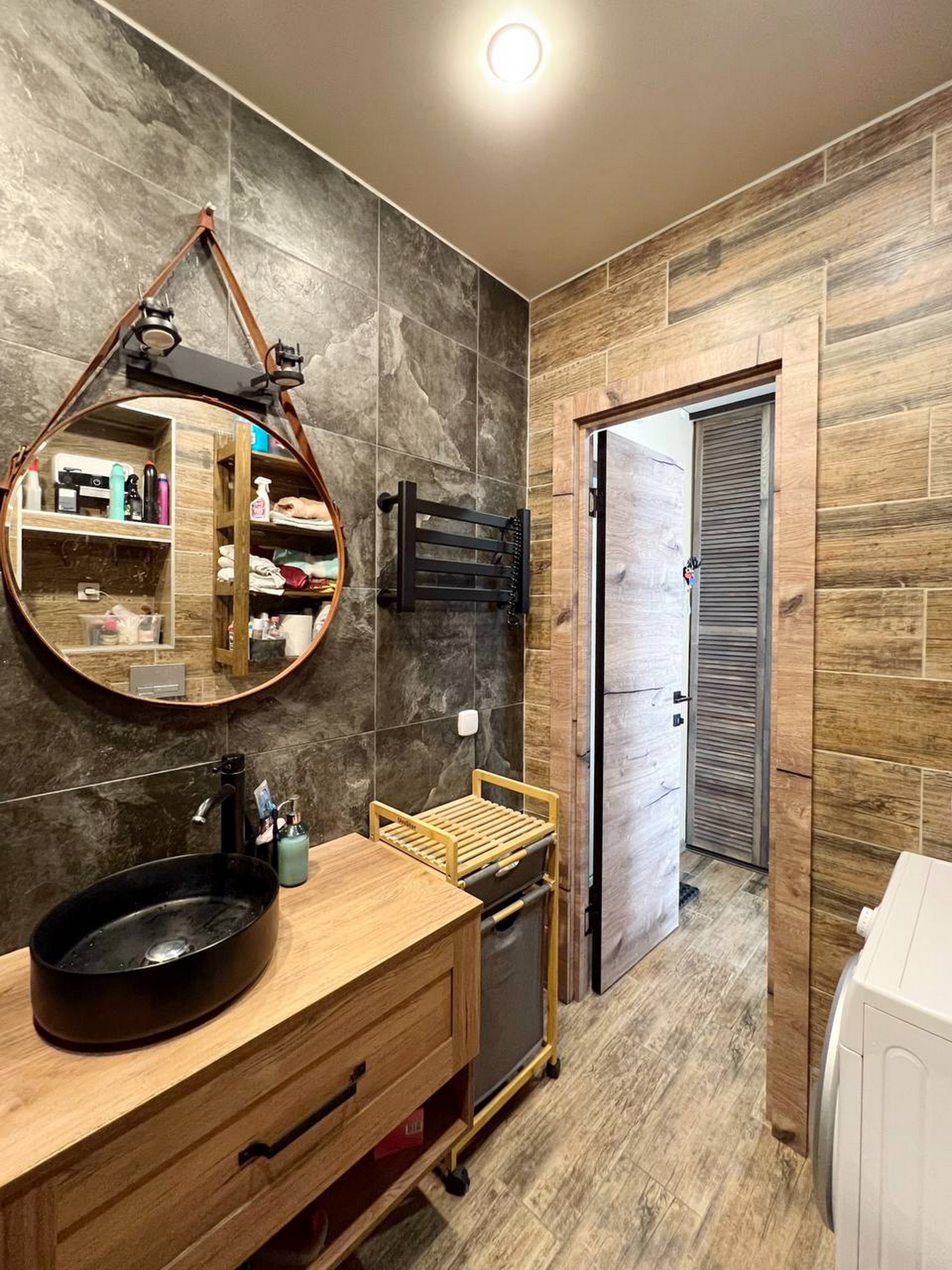 - большой совмещенный сан.узел 4,5 м2. На полу и стенах керамогранит
