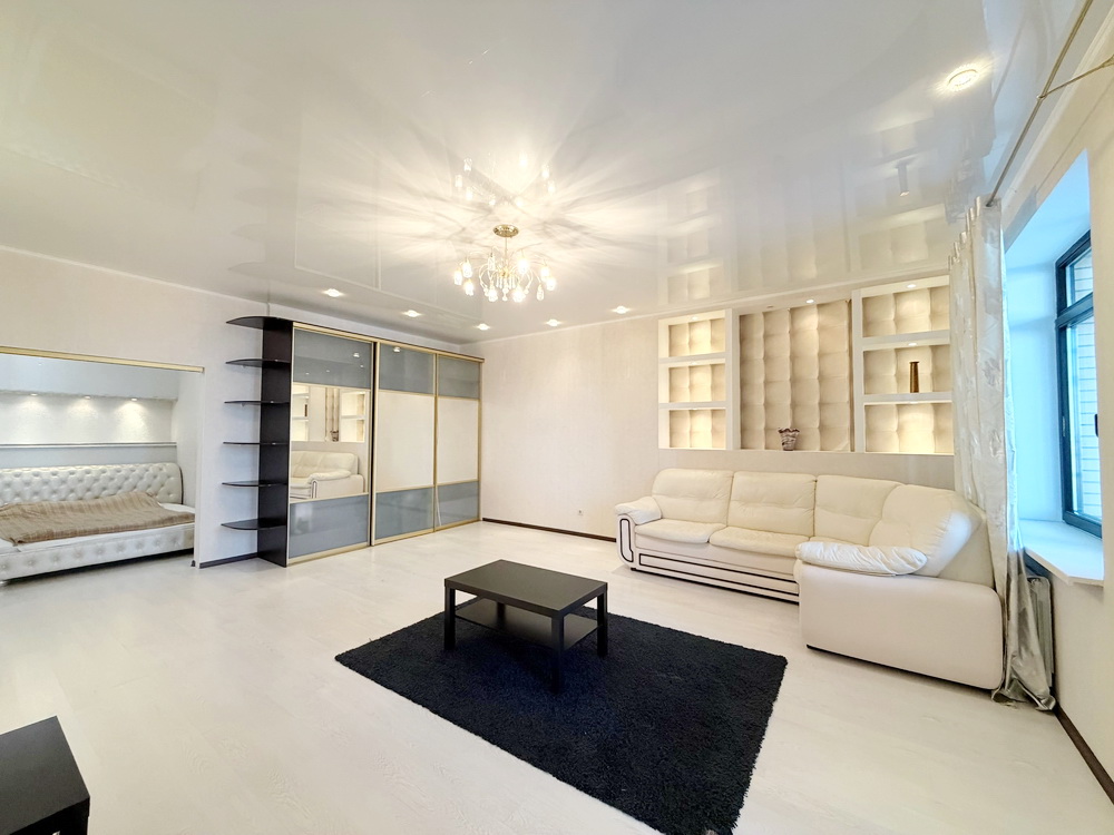 Квартира общей площадью 75,9кв. м с качественным ремонтом, полностью мебелирована. Просторная светлая комната с выделенной спальной зоной , большая кухня-столовая с выходом на балкон. Панорамная лоджия с великолепным видом на Казянь.