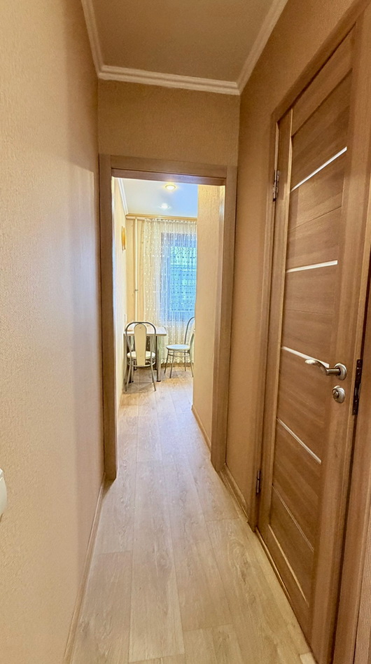 В квартира выполнен качественный свежий ремонт в выдержанных светлых тонах , что создает теплую атмосферу уюта. Хорошая планировка , окна во двор, балкон обшит и застеклен. Санузел совмещен в современном кафеле. Квартира не угловая ,не торцевая.