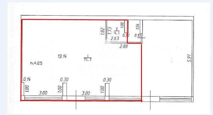 - высота потолка 4,25 м