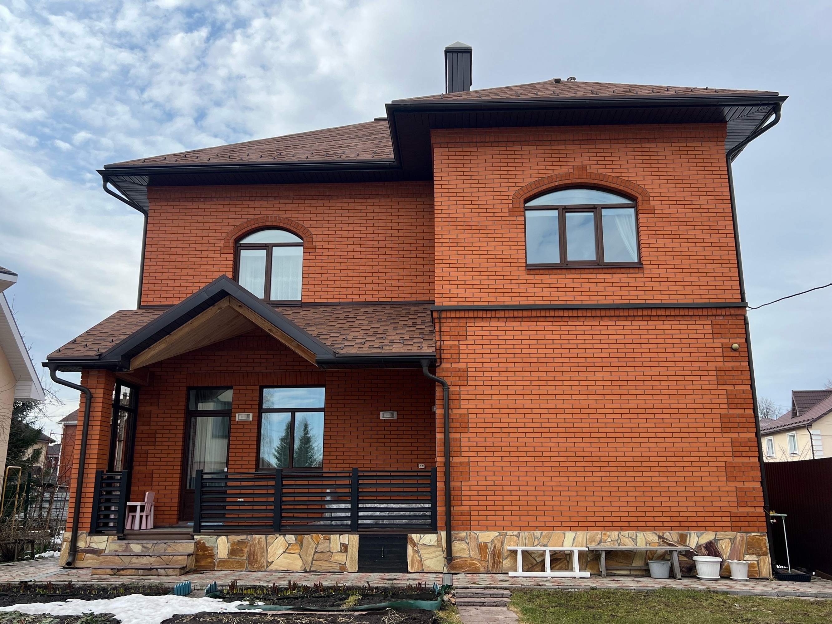 * Перед домом и по периметру - брусчатка