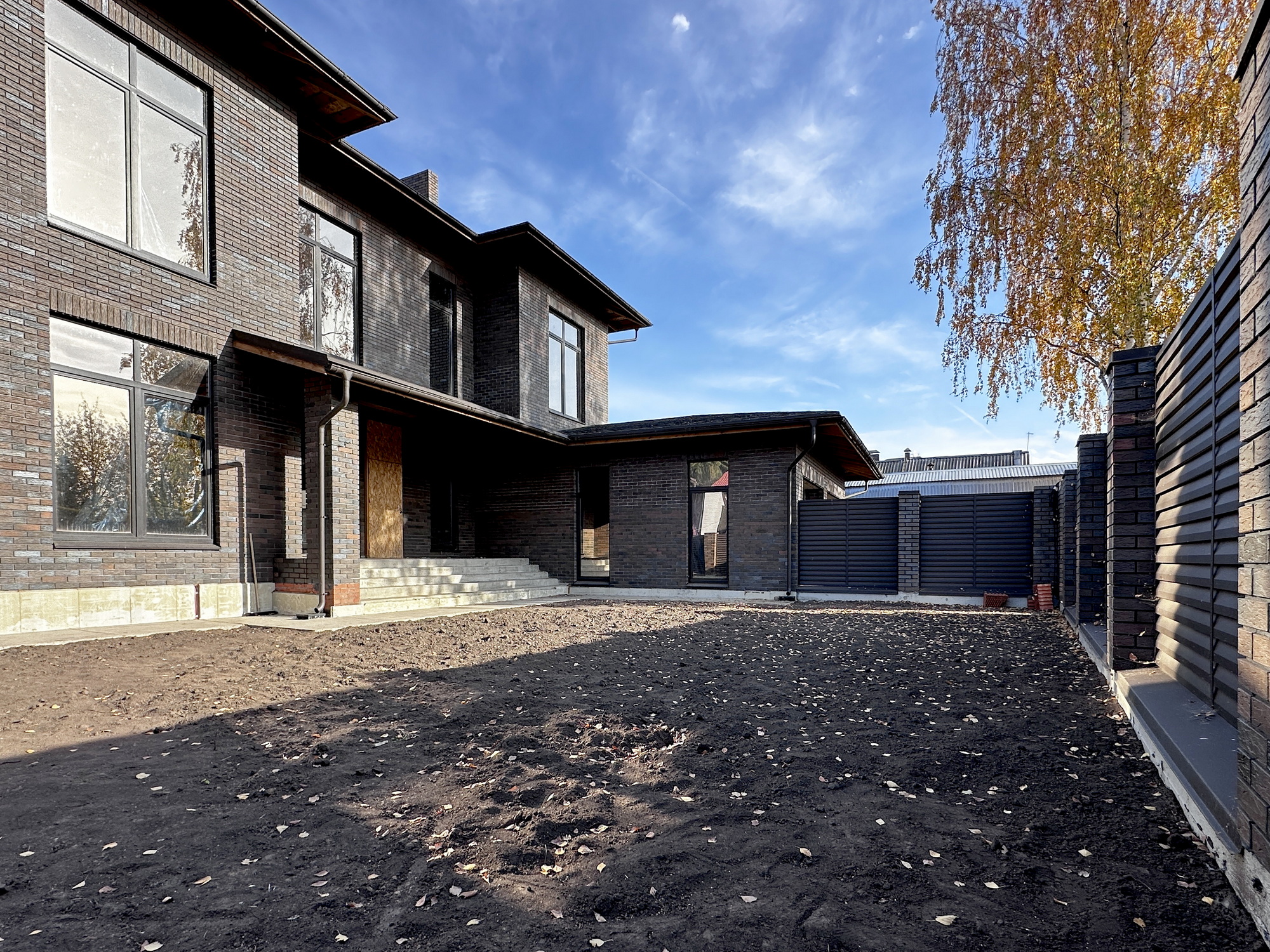 Все эти постройки расположены на участке 16,87 сот, огороженном забором из клинкерного кирпича в цвет фасадов.