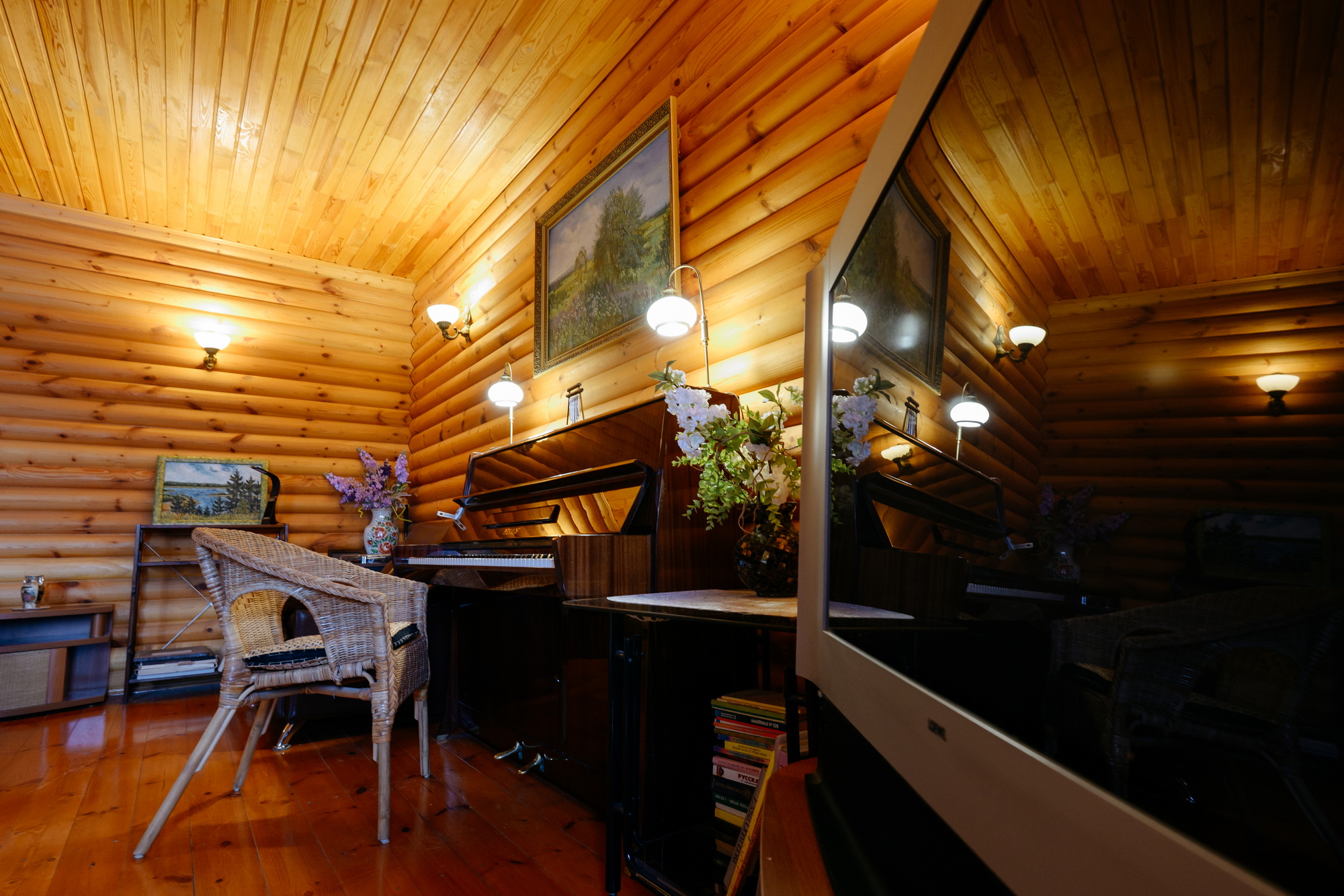 Внутренняя отделка: различные сорта древесины - лиственница, сосна, дуб и тд.