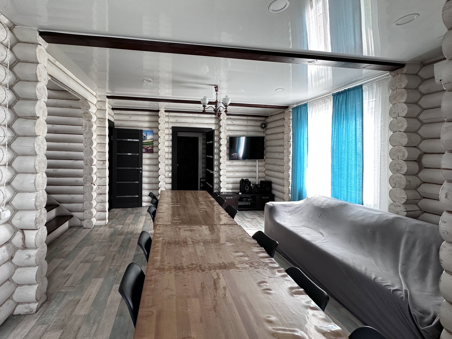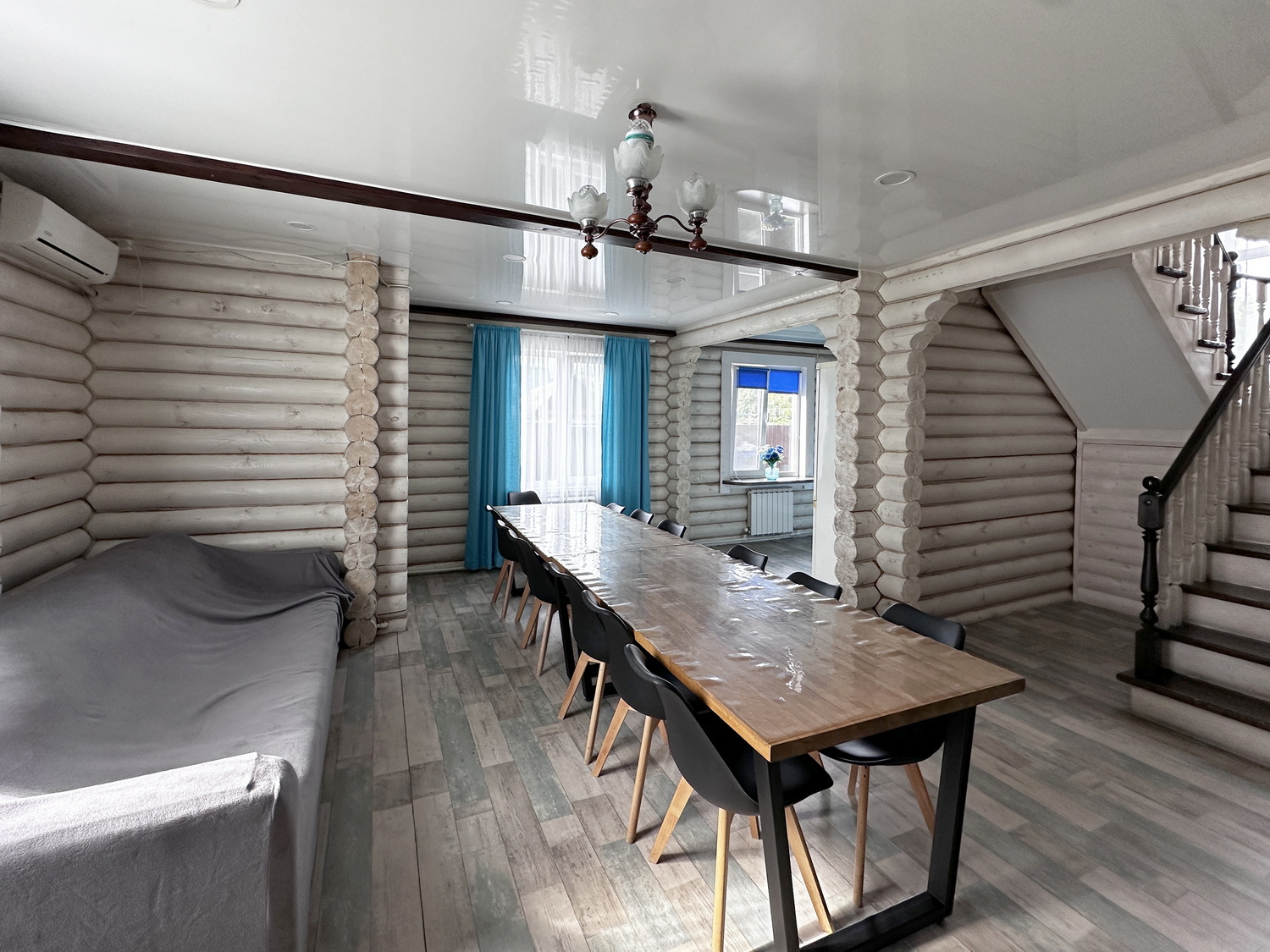 У дома имеется просторная терраса с видом на лес.