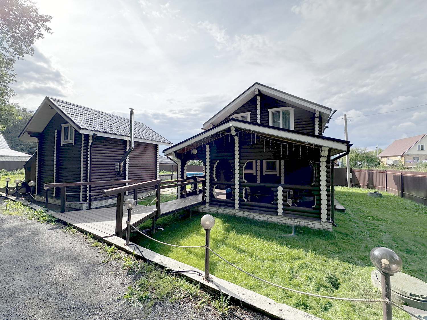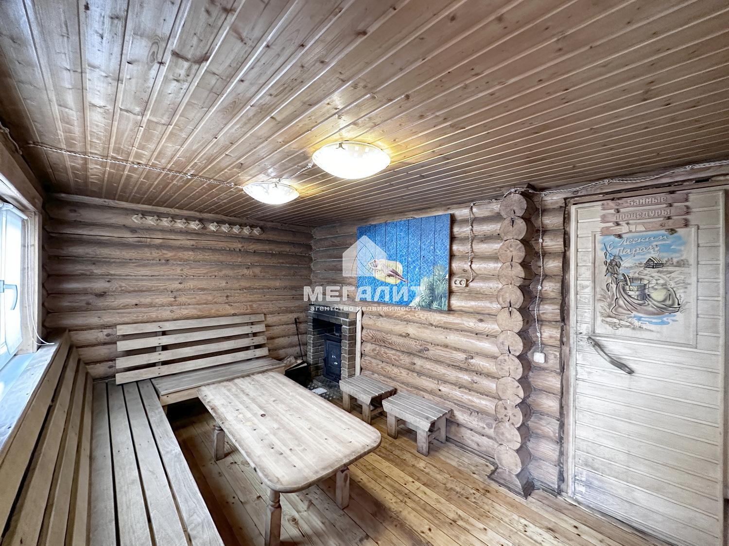 Также на участке построены бревенчатая баня на дровах с 2 гостевыми спальнями, хозблок.