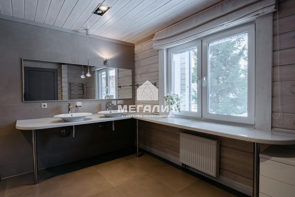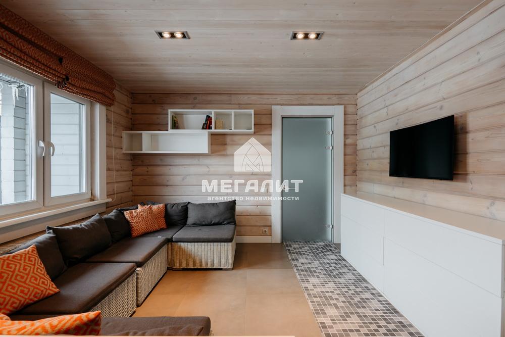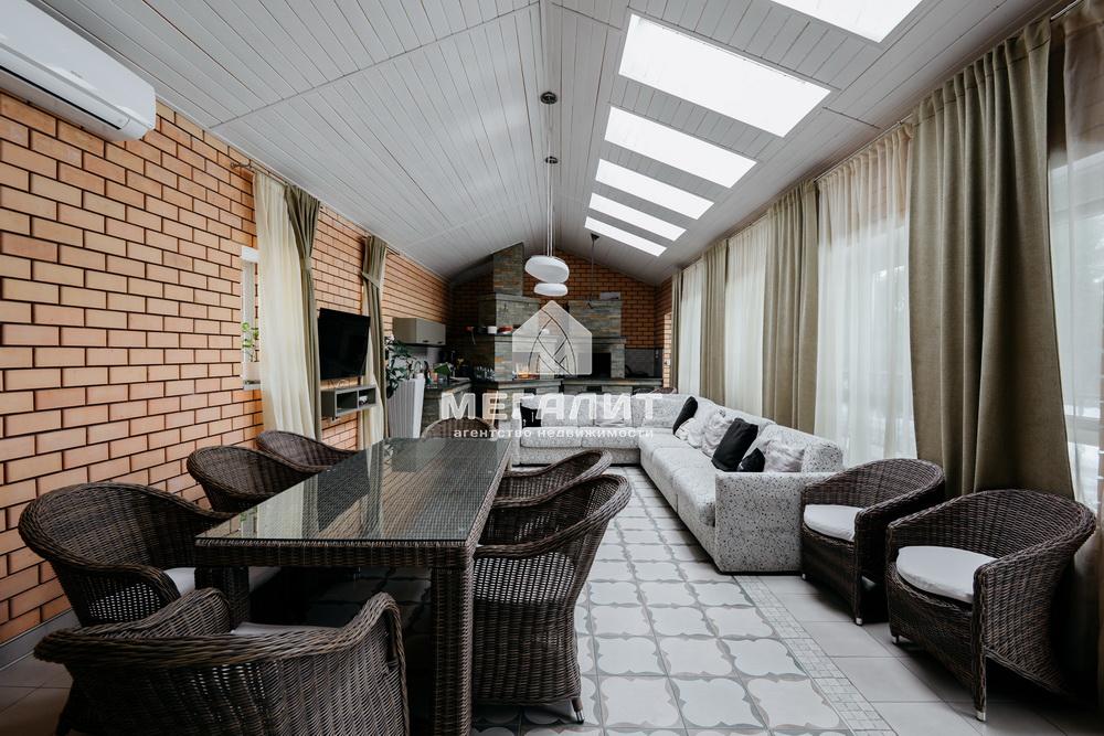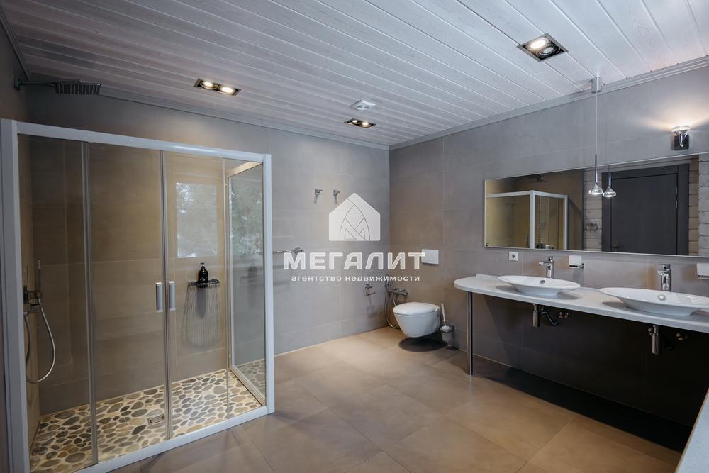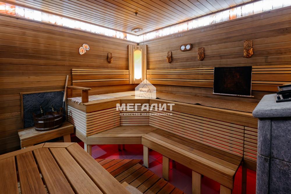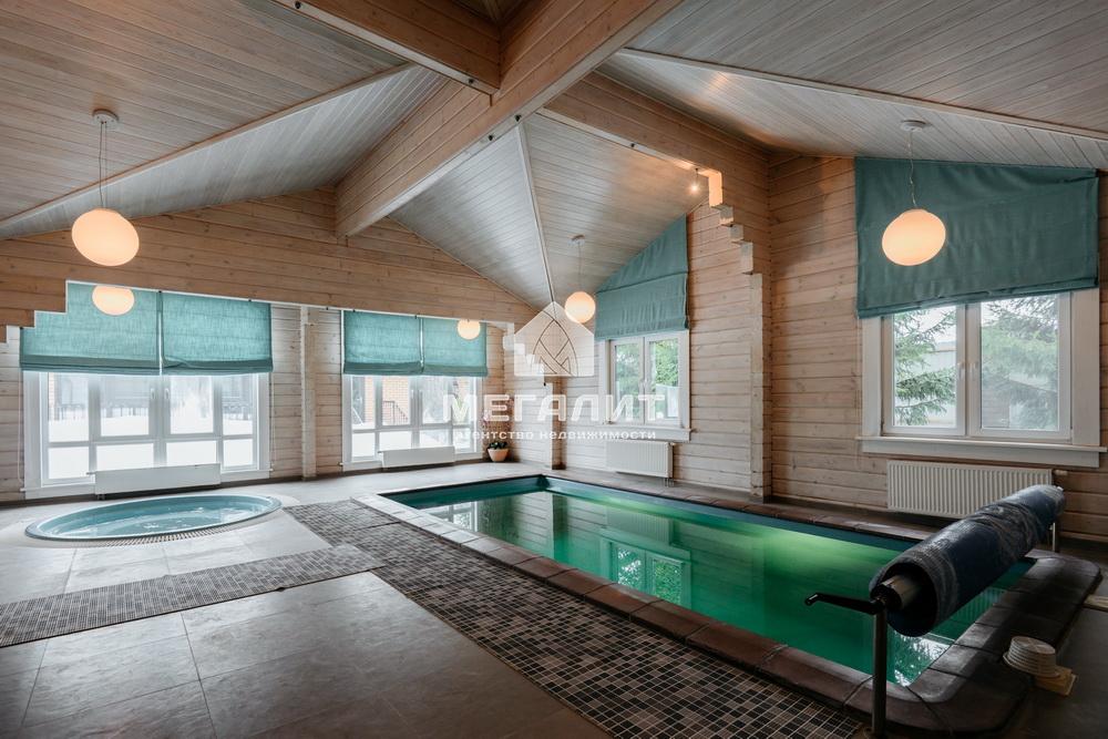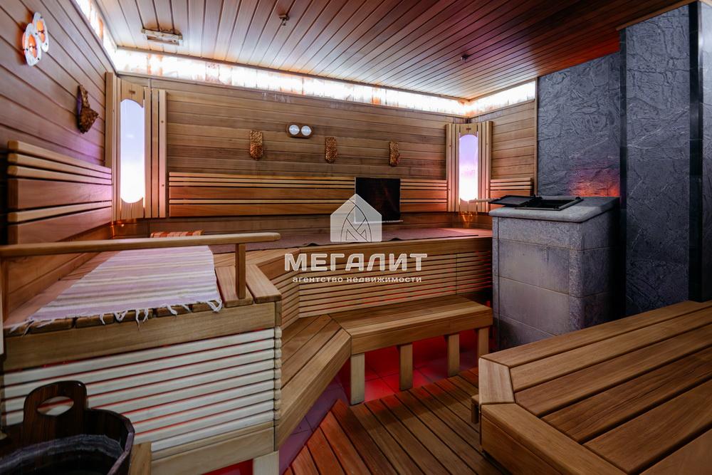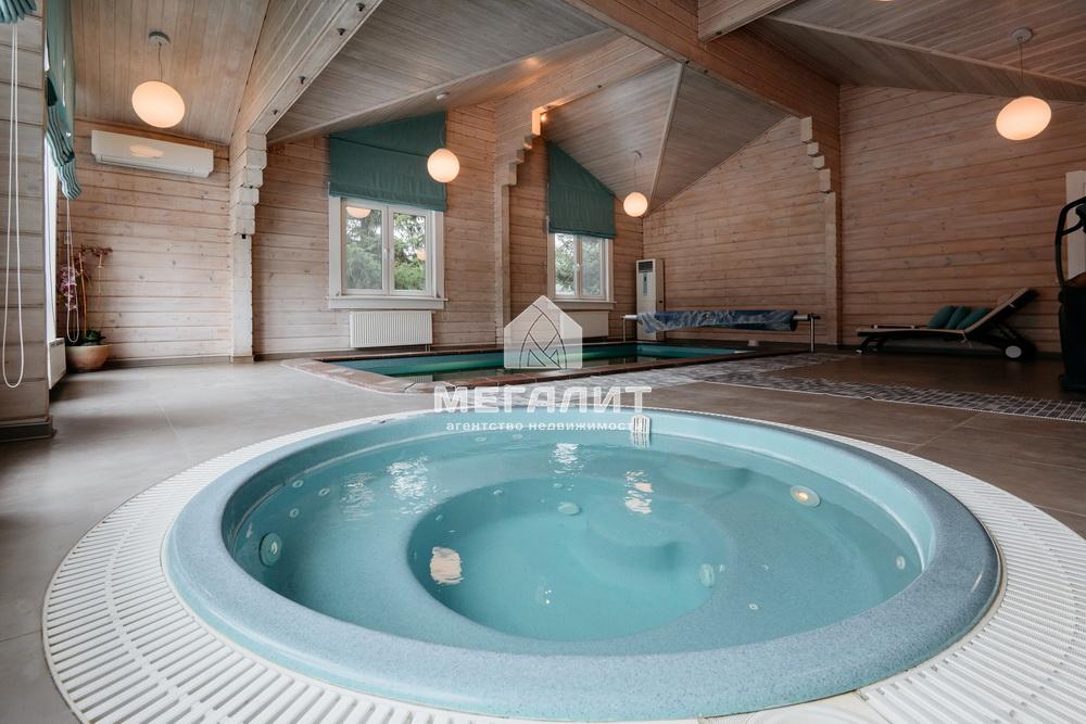 Просторная гостиная с выходом на летнюю террасу, большая кухня-столовая со встроенным кухонным гарнитуром и всей необходимой техникой, 5 спален, гардеробные, 4 санузла, прачечная, котельная, а так же уютный банный комплекс, включающий в себя предбанник, моечную, парную, комфортную комнату отдыха со всеми необходимыми удобствами, бассейн, джакузи.