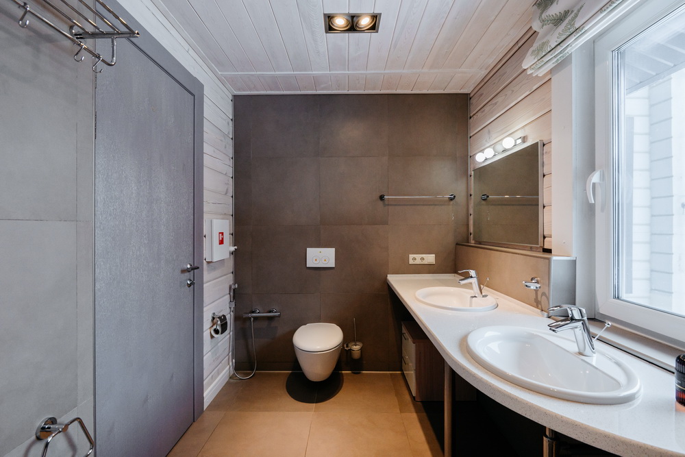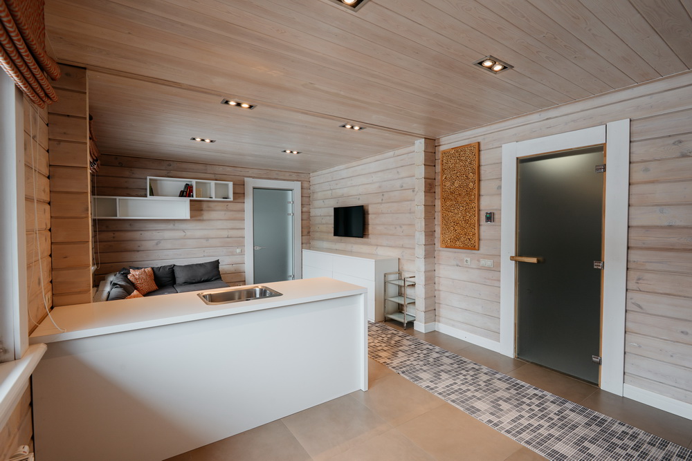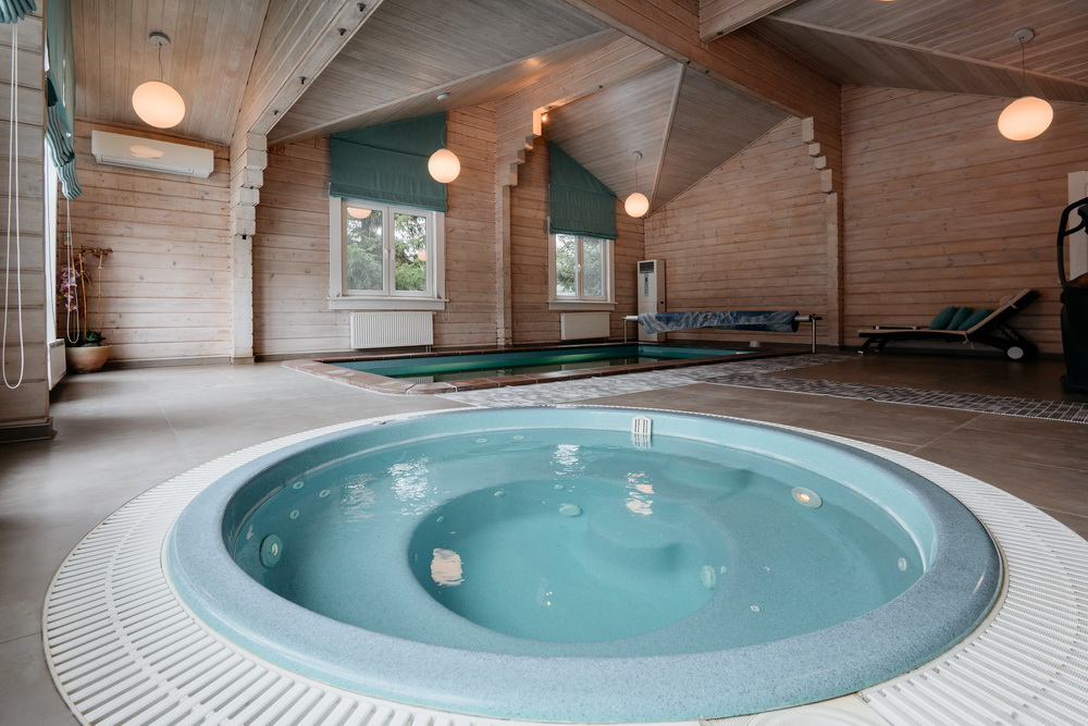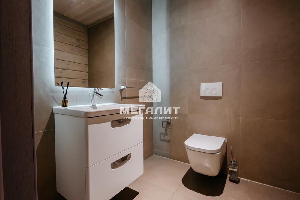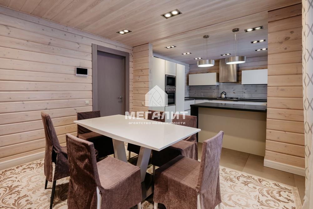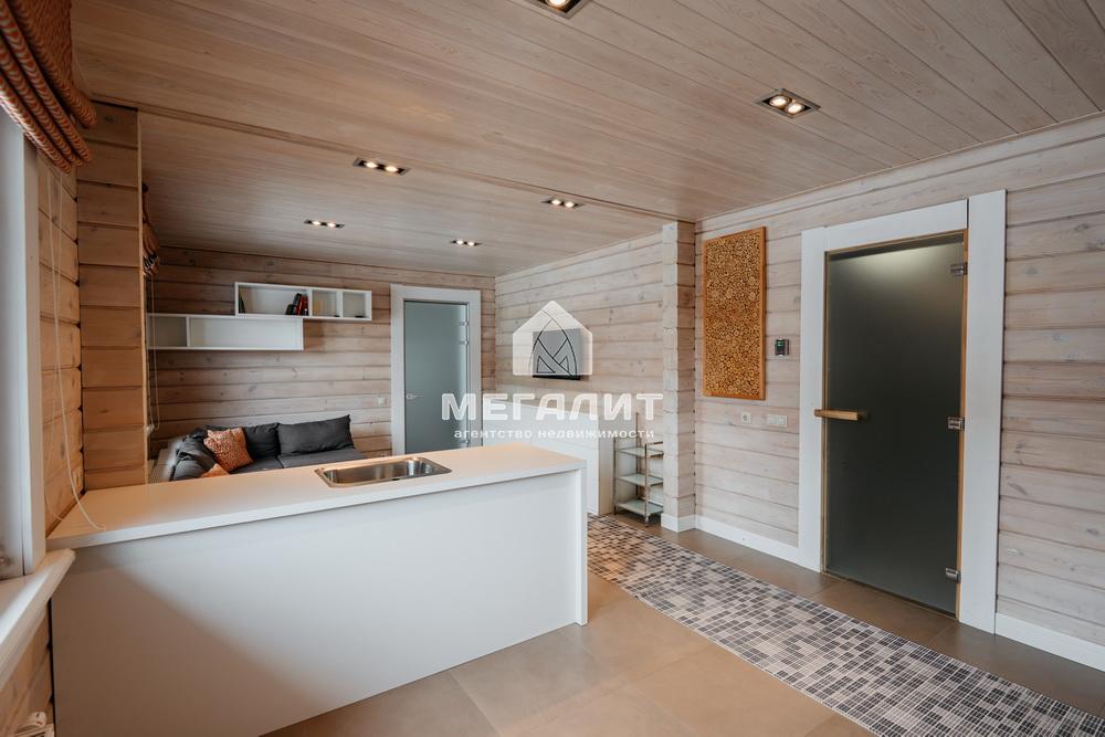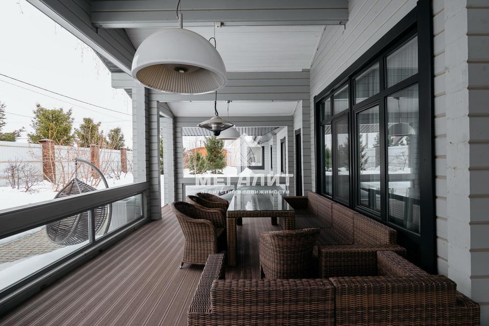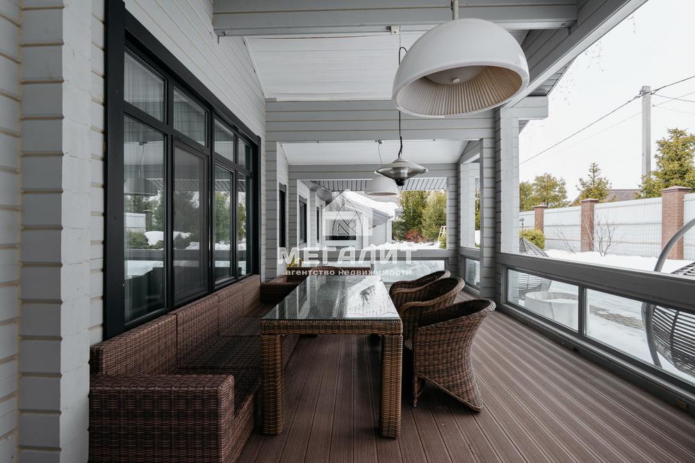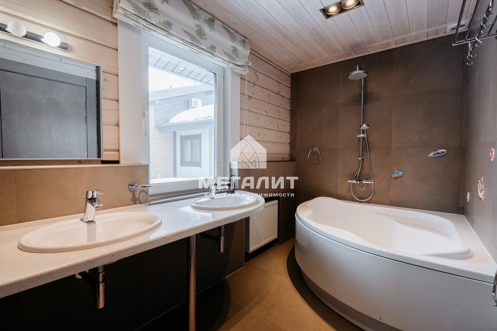 Просторная гостиная с выходом на летнюю террасу, большая кухня-столовая со встроенным кухонным гарнитуром и всей необходимой техникой, 5 спален, гардеробные, 4 санузла, прачечная, котельная, а так же уютный банный комплекс, включающий в себя предбанник, моечную, парную, комфортную комнату отдыха со всеми необходимыми удобствами, бассейн, джакузи.