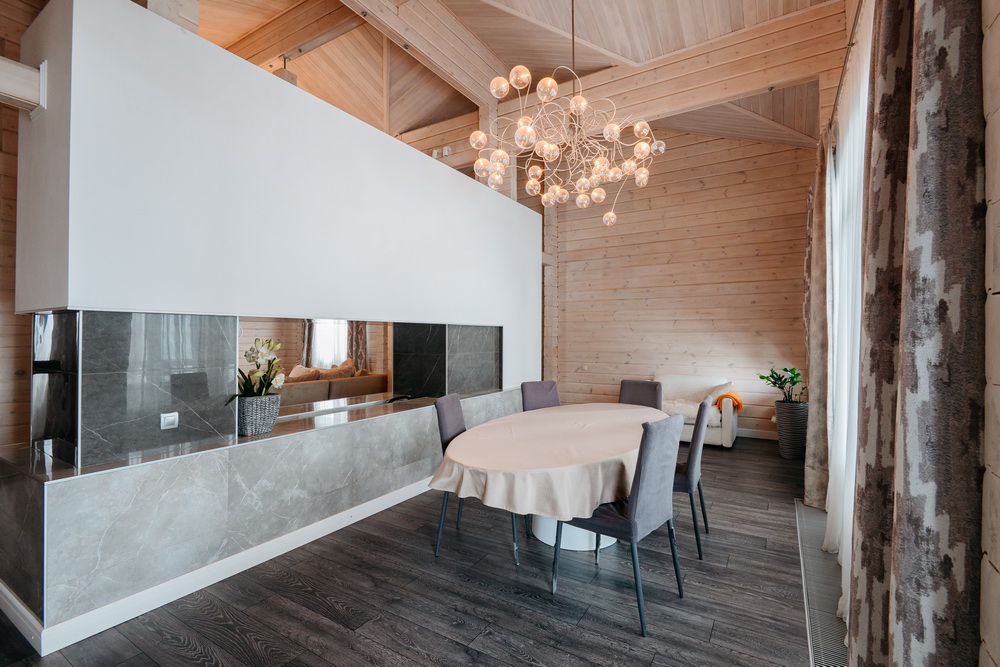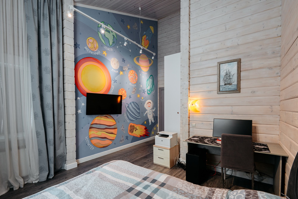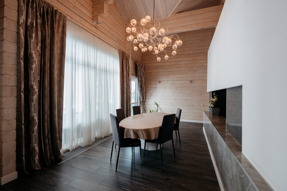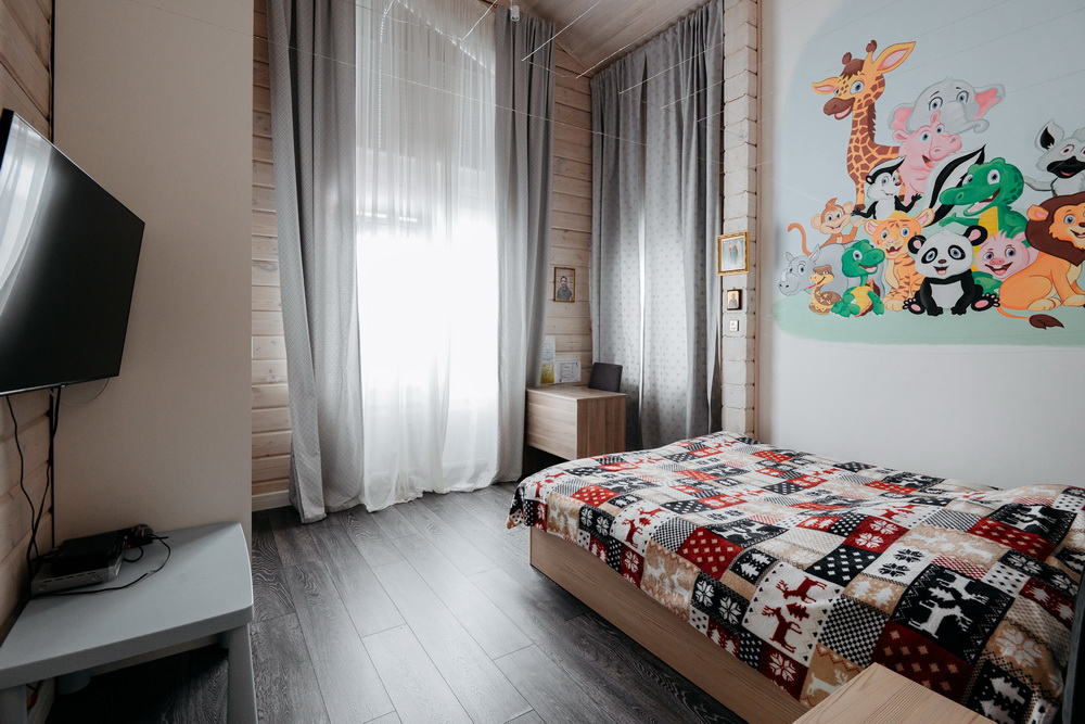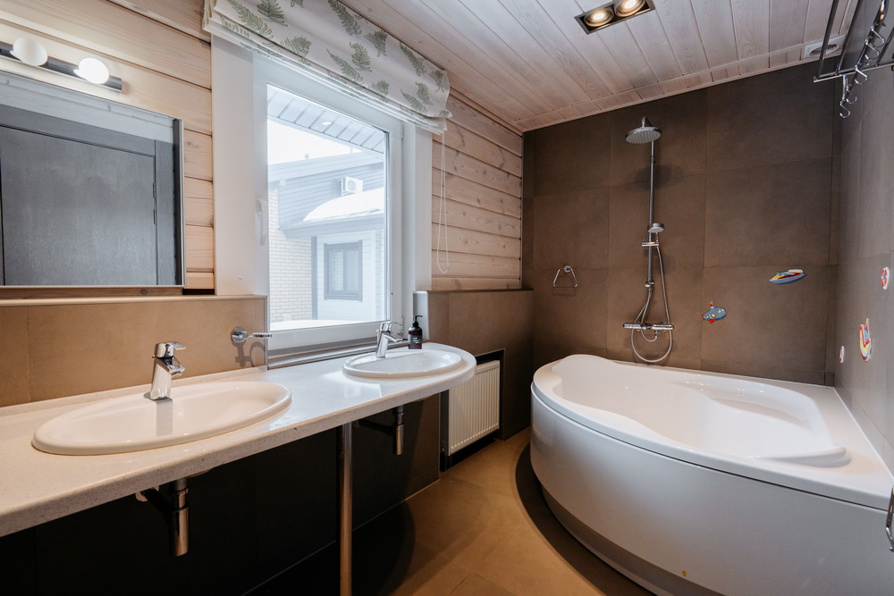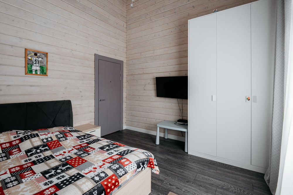 Внутренняя отделка дома выполнена из натурального дерева, во всех помещениях установлены пластиковые евроокна и кондиционеры.