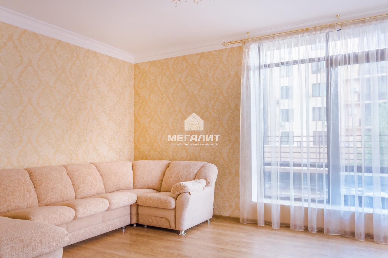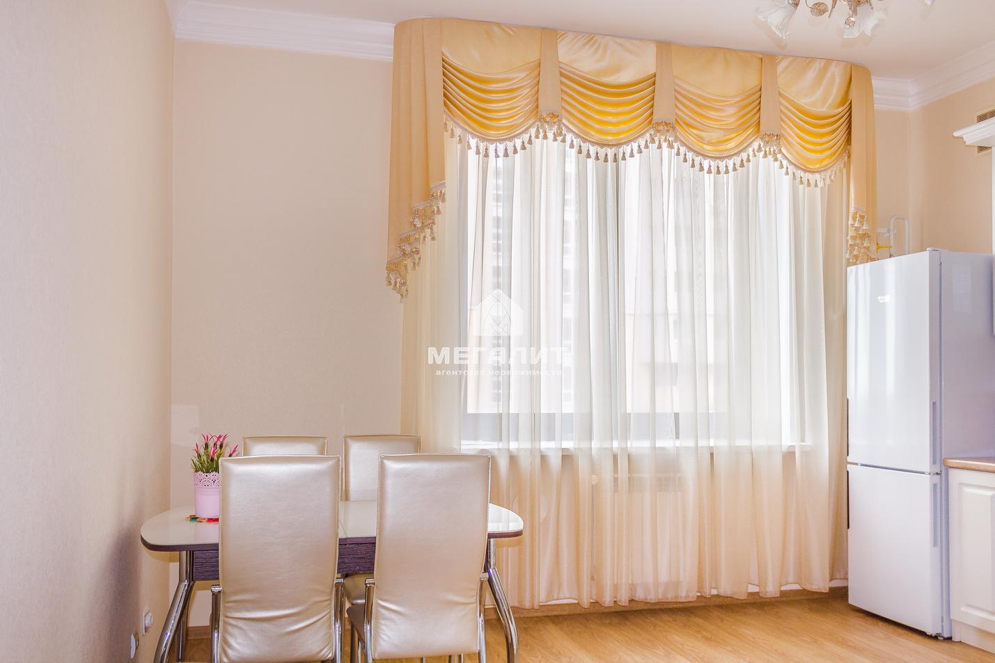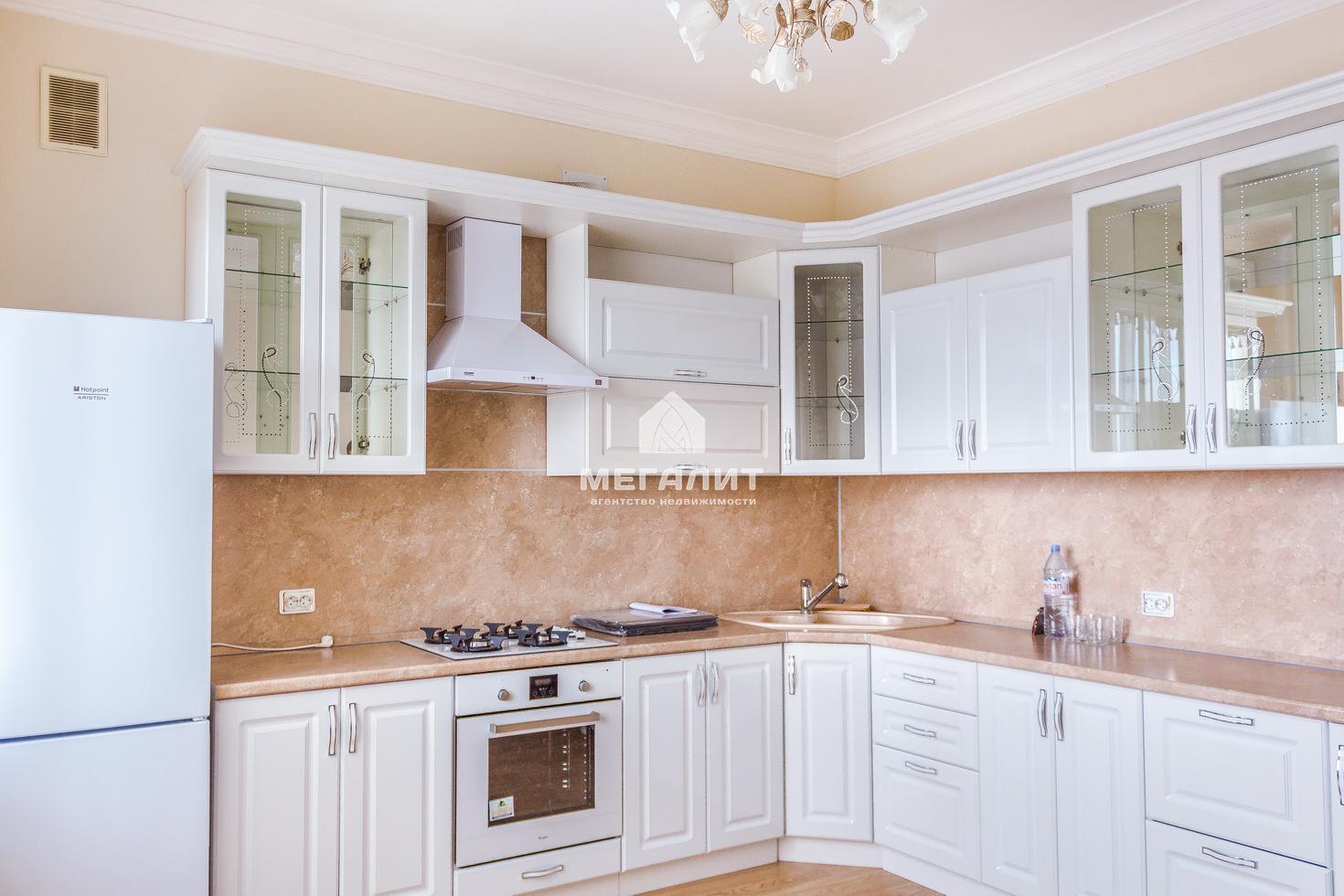 Продуманная планировка и качественный ремонт в приятных тонах. Большая кухня, стильный кухонный гарнитур со встроенной техникой. Хорошая новая мягкая мебель в зале, изящный гарнитур в спальне. Панорамное остекление, выход на просторную террасу (150 кв.м.) из зала.