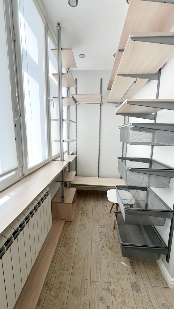 - большая теплая лоджия с системой хранения вещей