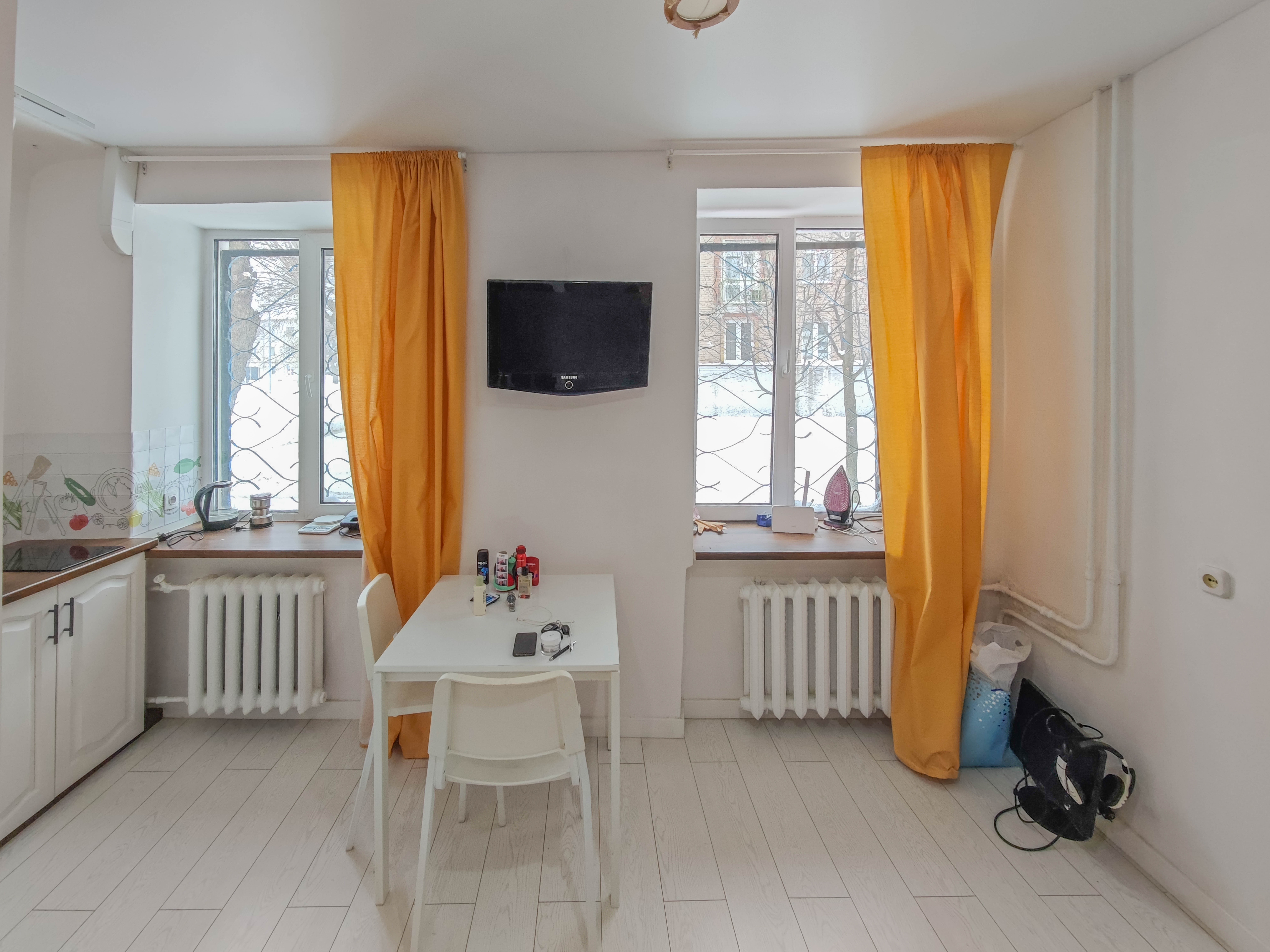 Квартира просторная, не угловая, с двумя большими окнами, очень тёплая, светлая, солнечная, с высокими потолками, обои в пастельных тонах, на окнах пластиковый стеклопакет.