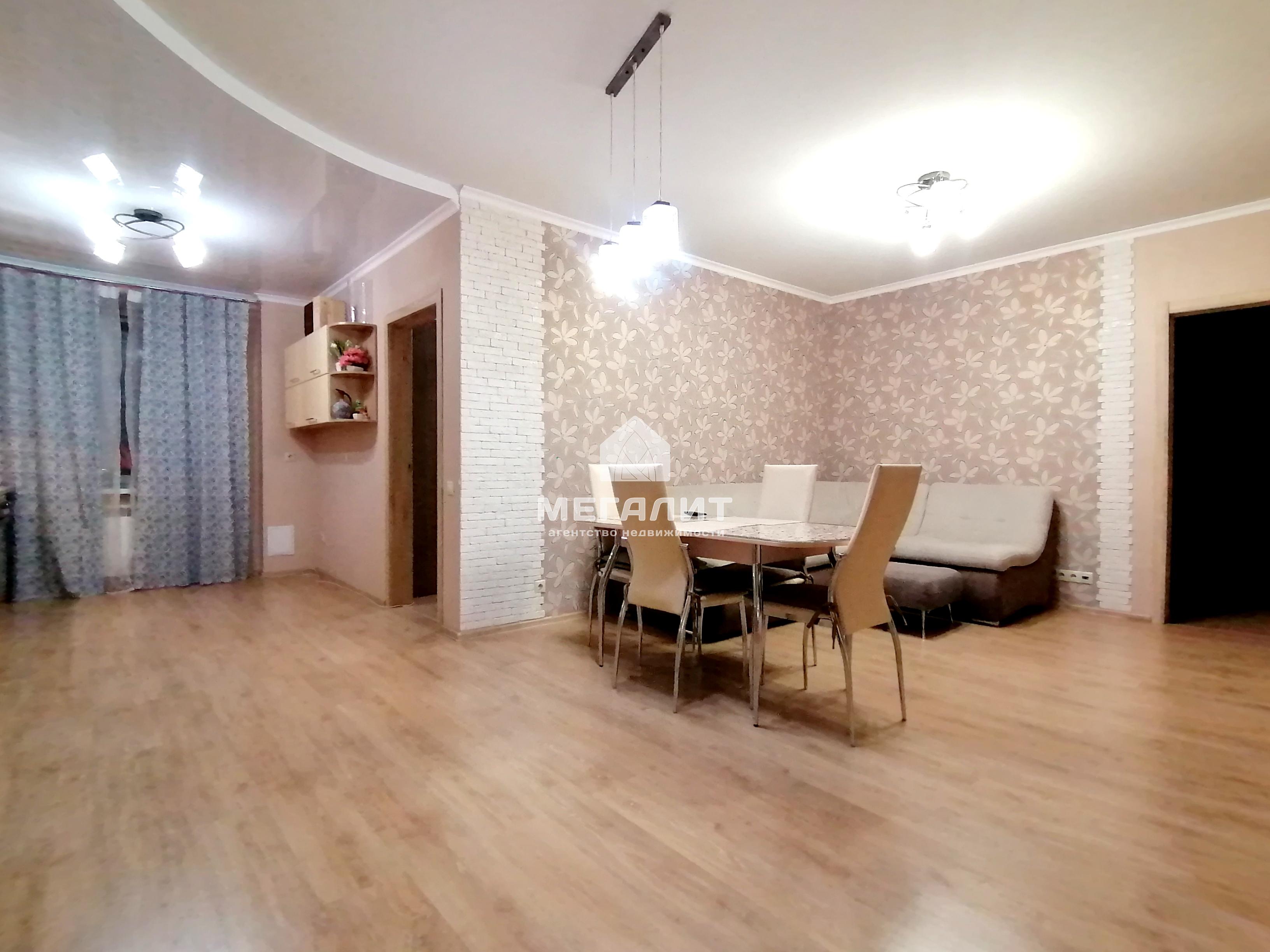 Квартира расположена на четвертом этаже девятиэтажного кирпичного дома. Продуманная до мелочей планировка, просторный холл, большая кухня-гостиная, три изолированные комнаты, два санузла. Квартира полностью готова к проживанию, сделан современный ремонт в спокойных пастельных тонах. При продаже остается вся мебель и техника, а также предметы интерьера.