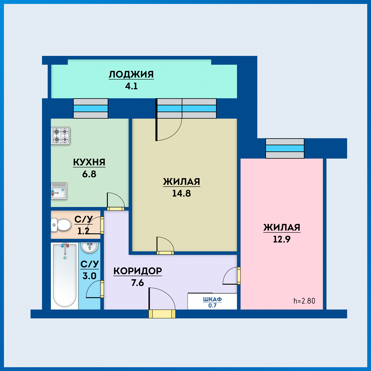 Кирпичный дом 1996 года постройки. Удобная планировка квартиры, высота потолков - 2,8 м. Изолированные комнаты, квадратная кухня 7 кв.м, раздельный санузел. В квартире есть существенное преимущество, так как имеется собственная лоджия на кухню и гостиную. В квартире требуется косметический ремонт.