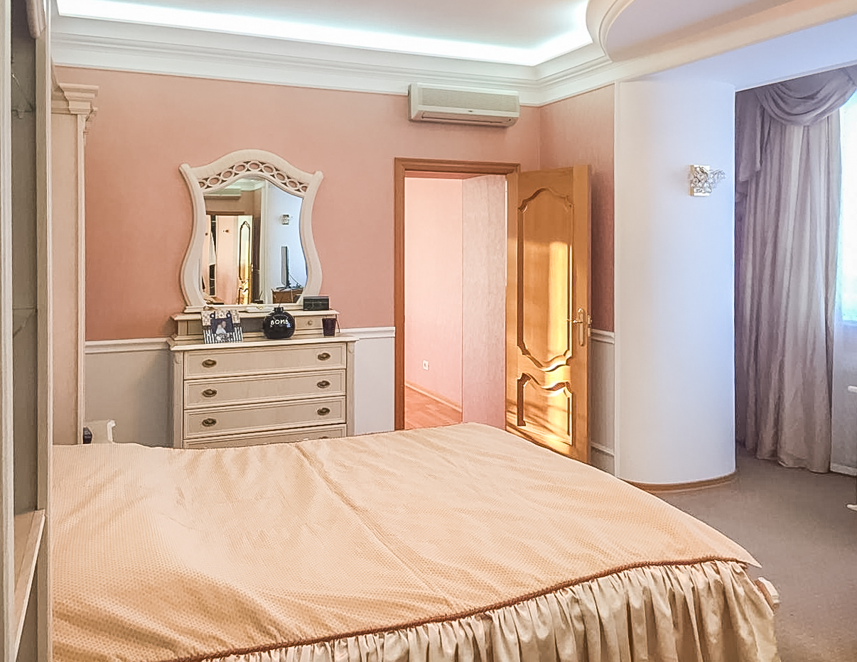 Высокие трехметровые двухуровневые потолки, увеличенные оконные проемы, в результате, комнаты буквально дышат светом и простором. В отделке использованы немецкие и итальянские обои, испанская и итальянская плитка, высококачественный штучный паркет и напольная плитка с системой теплых полов, европейская сантехника и смесители. Продумана и система хранения вещей – несколько вместительных шкафов-купе. В каждой комнате действует система кондиционирования.