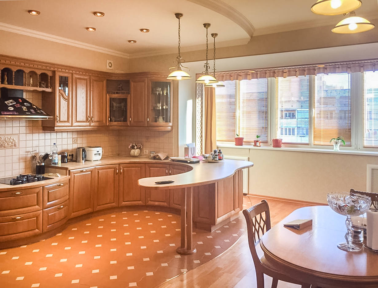 Это предложение для ценителей сдержанного шика и утонченности. Квартира повышенной комфортности, с грамотной планировкой. Прекрасный холл с колоннами; большая торжественная гостиная; изящная спальня с выходом в зимний сад; светлая детская комната; рабочий кабинет; просторная кухня-столовая (35 кв.м.) с кухонным гарнитуром из массива дерева, со встроенной бытовой техникой европейской сборки (встроенный холодильник, посудомоечная машина, микроволновая печь, духовой шкаф, варочная поверхность); совмещенный санузел.