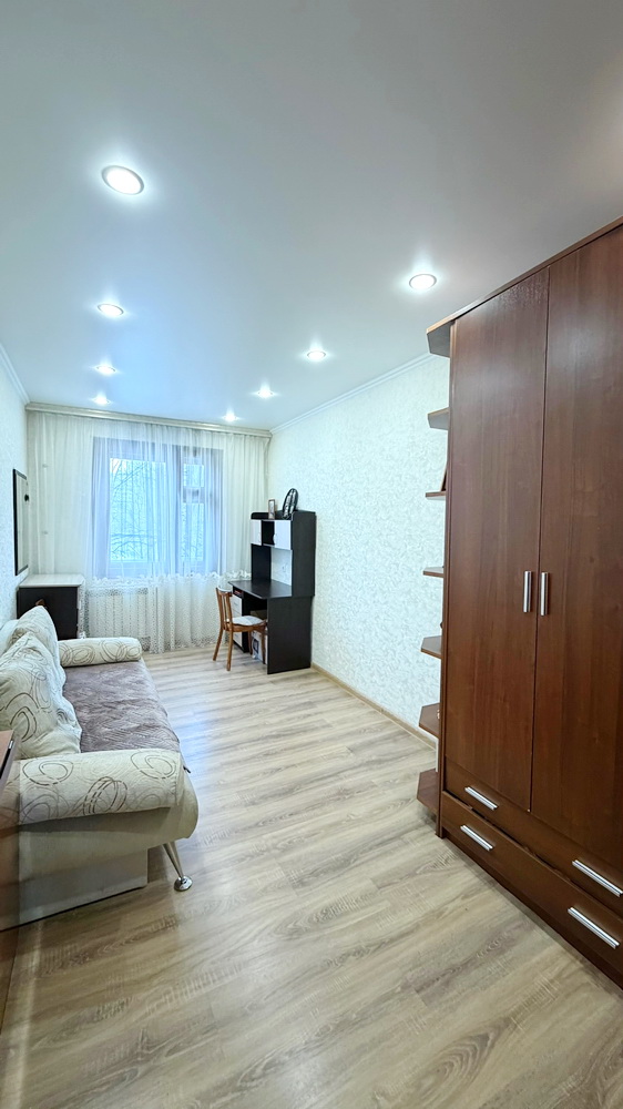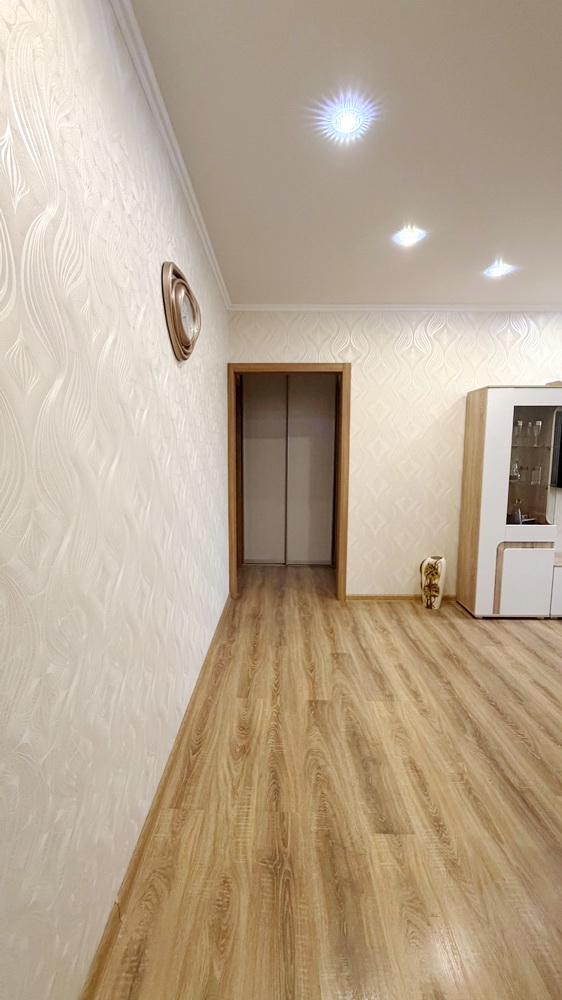 В квартира выполнен качественный свежий ремонт в выдержанных светлых тонах , что создает теплую атмосферу уюта. Хорошая планировка , окна во двор, балкон обшит и застеклен. Санузел совмещен в современном кафеле. Квартира не угловая ,не торцевая.