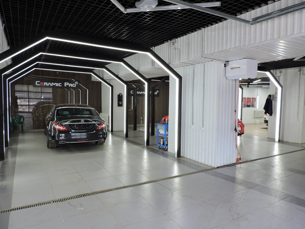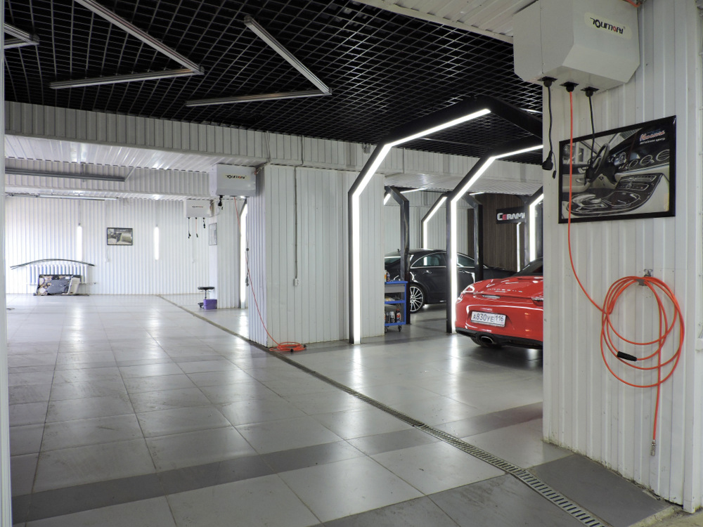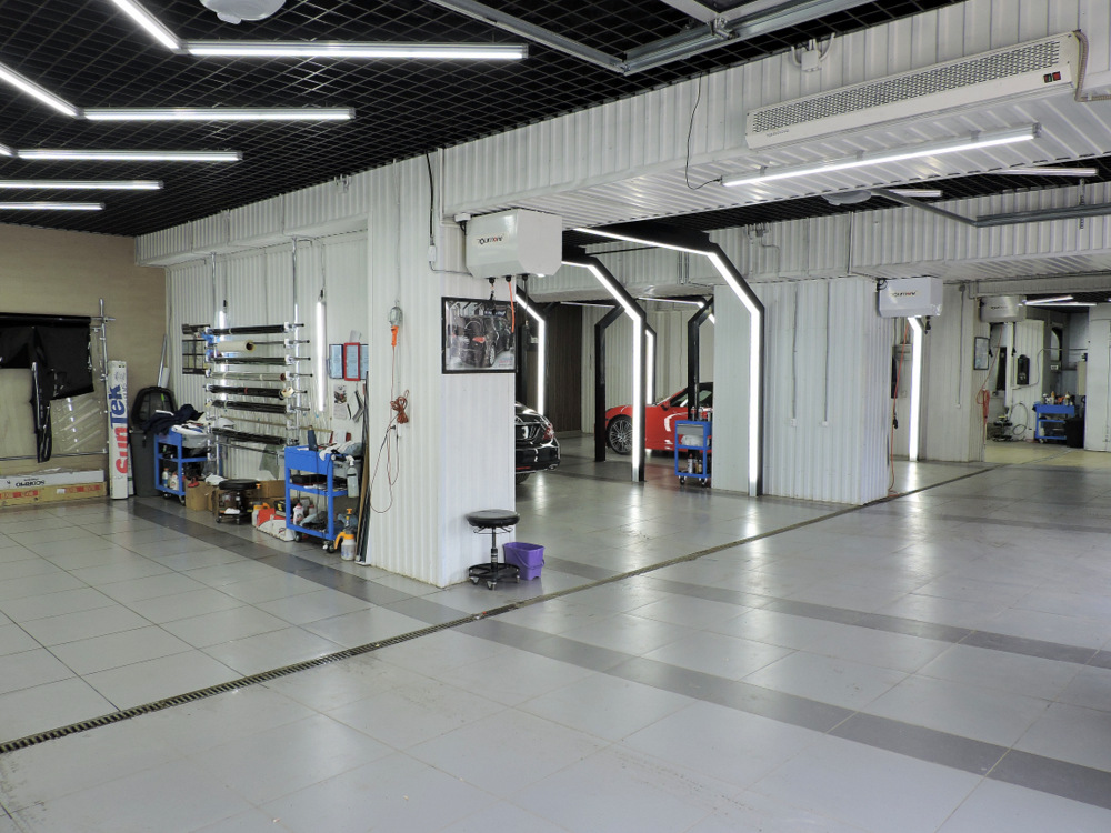 У здания презентабельный внешний вид – фасад обшит керамогранитом спокойных оттенков. Внутри – как в автосервисе, так и в офисных помещениях, сделан аккуратный современный ремонт.