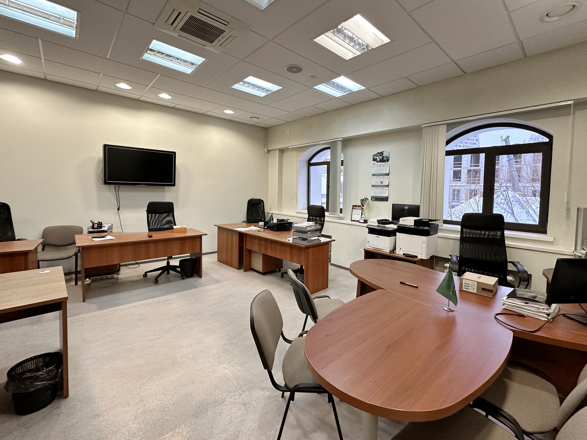 В помещении 2 окна благодаря чему в нем много света. Дорогостоящая отделка, при необходимости может сдаваться с полным комплектом офисной мебели.